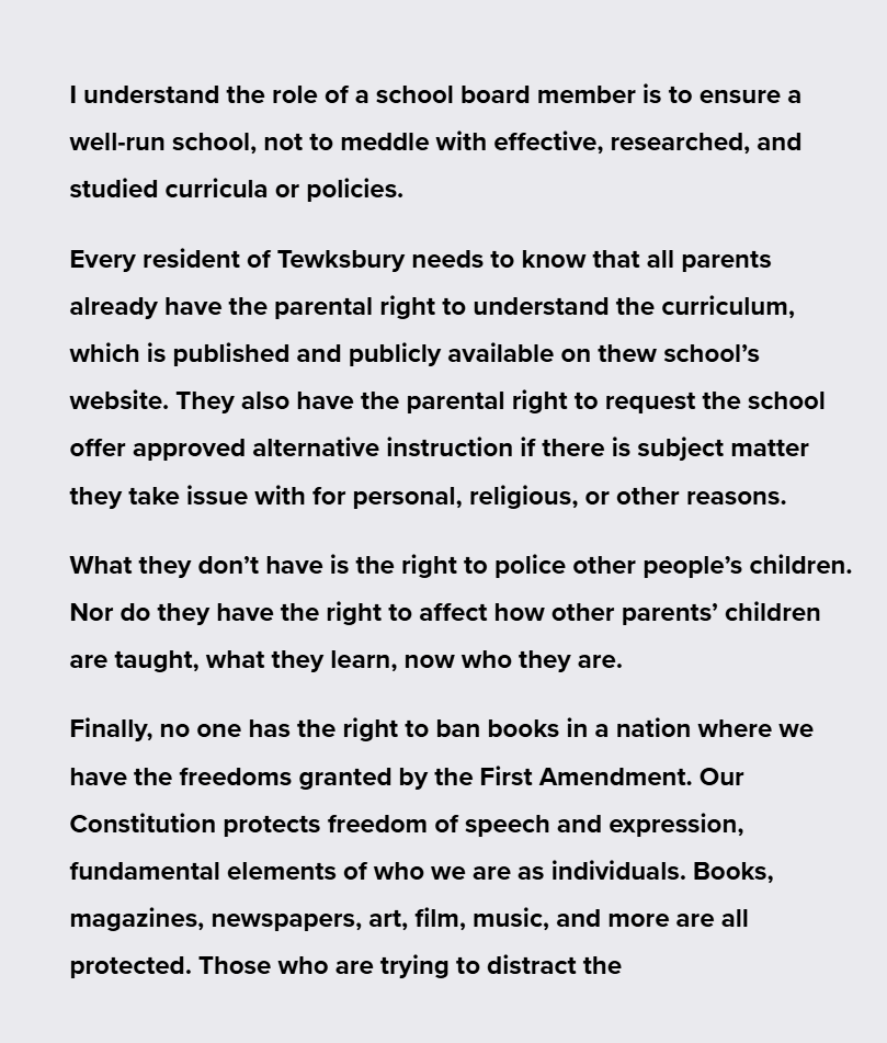 Let’s see some examples of Andrew’s own words during his 2 failed runs for Tewksbury BOE, to see who he truly is – therefore was instructed to cut his hair (that man bun, what a loss) in order to tag along on the tailcoats of Debra Bonomi.