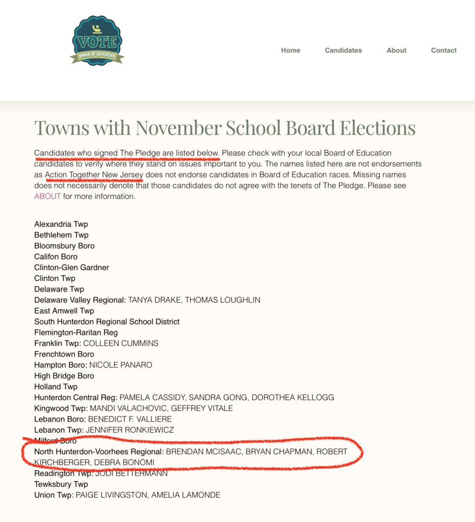 Let’s see some examples of Debra’s actions during her North Hunterdon-Voorhees BOE campaigning and her tenure on the board.