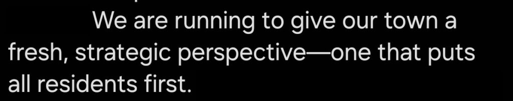 “We are running to give our town a fresh, strategic perspective – one that puts all residents first.” When these people use the word “All”, it is not what you think it means; they have redefined the meaning like many other words, and actually mean “All” people who think like they do (they are great at group-think, like bigots and racists do). Oh they will definitely give a fresh perspective; from pass actions, we probably should expect to get drag queen story hour for children at the Tewksbury Public Library, weekly – like the new Sesame Street or Muppets programs have.